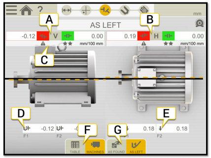 5.顯示器顯示測量結(jié)果,操作人員根據(jù)結(jié)果判斷軸對中狀態(tài)。